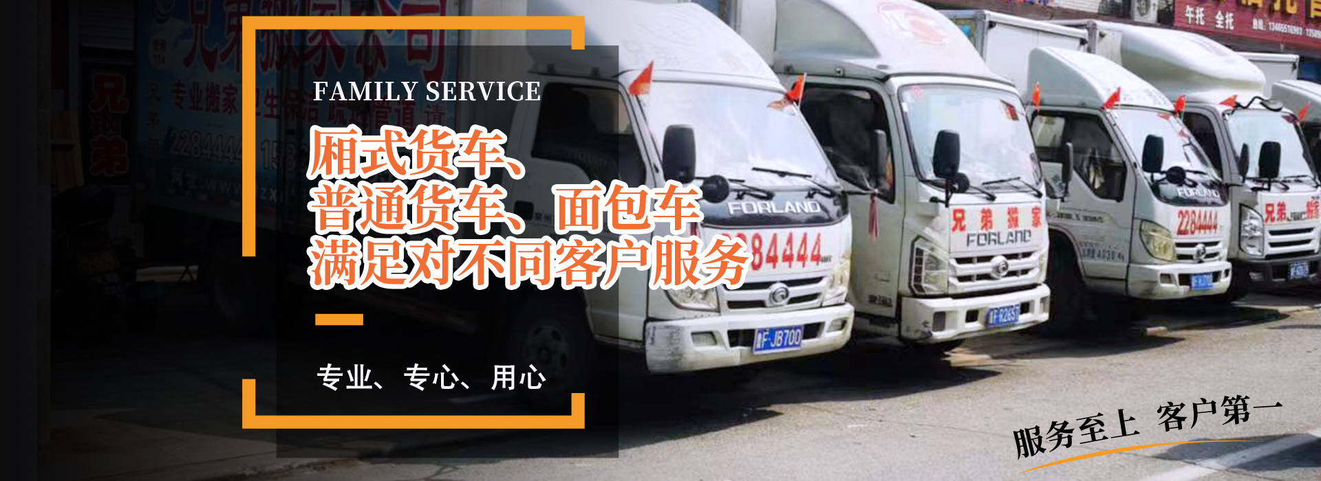 公司備有:廂式貨車、普通貨車、面包車等,滿足對不同客戶服務(wù),為萊州及周邊地區(qū)搬家服務(wù),提供方便。曾被廣大客戶評為“專業(yè)、專心、用心”的搬家公司。以合理收費(fèi)為標(biāo)準(zhǔn),以客戶滿意為服務(wù)質(zhì)量,力作萊州人的好兄弟!您的滿意就是我們的追求!歡迎各企事業(yè)單位及個人來電咨詢!